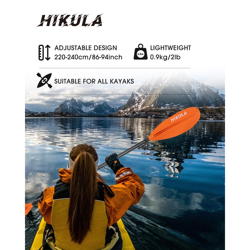 HIKULA Kayak Paddle Aluminum Shaft Paddle with Nylon Blades, Floating Adjustable Kayaking Oars, 3 Piece, 220-240cm/86-94 Inches,Orange