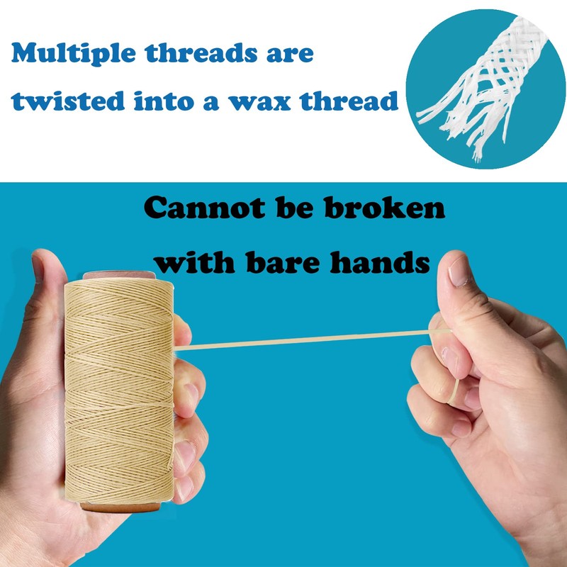 - Lightly Waxed Leather Sewing Thread: The thread is coated with the right amount of wax, it will help you penetrate the leather easily.