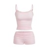 Hilinker Women Lace Trim 2 Piece Pajama Set Ruched Cami and Shorts Summer Cute Pjs Pink X-Small
