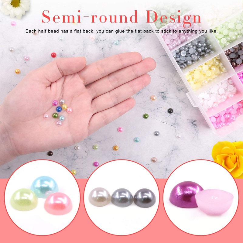 - 【NICE COLOR MIX】120pcs each color, 2880pcs half pearls for crafts, 24 colors available for your choice. Our imitation pearls flatback scrapbook beads are half round shaped. We have Creamy-white, pure white, light pink, light coffee, dark coffee, light purple, light green, light blue, lake blue, pinkish-white, light yellow, red, pink, dark pink, dark blue, dark purple, dark green, orange, gold, black, silver gray, silver, dark gray, and lemon yellow
