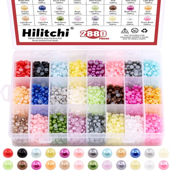 Hilitchi 2880Pcs 6mm Flat Back Half Round Artificial Pearl Beads for Craft DIY Phone Nail Art Making