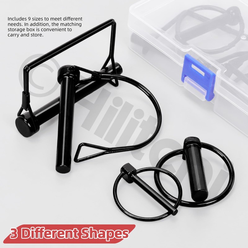 Hilitchi 9PCS 8Sizes Wire Lock Pin Heavy Duty Carbon Steel Black Quick Release Lock Pin Hitch Pto Pin Trailer Coupler Pin for Farm Lawn Garden