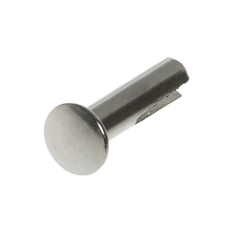 Split rivets contain a cone-shaped head and two tinelike legs. Our split rivets pierce soft materials, such as wood, light metals, leather and fibers. Possessing prong ends designed to roll back into the material, our split rivets provide a strong, smooth clinch.