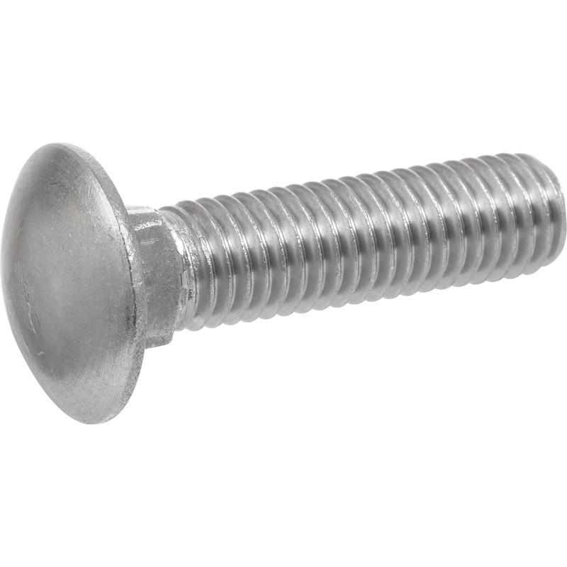 Carriage Bolts have a smooth, rounded head that has a small square section underneath. They are used in wood connections utilizing the square neck under the round head which will sit into the hole to prevent the head from turning. These carriage bolts come plated in zinc for moderate corrosion resistance.