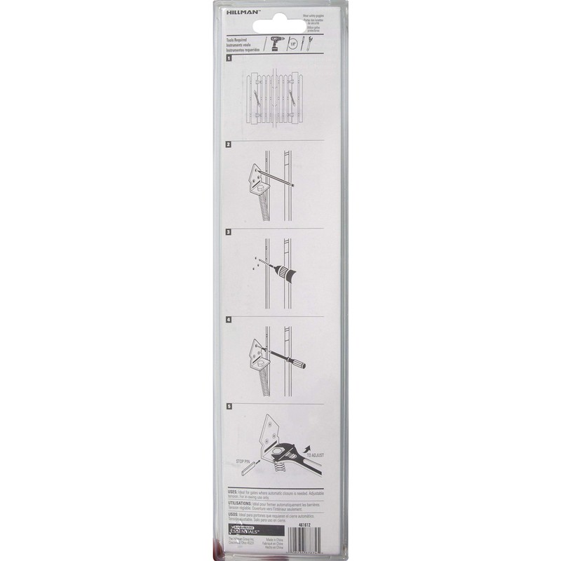 Hardware Essentials Self Closing Gate Spring features an adjustable gate spring. Great for outdoor applications such as pools, patios and gates. Has a decorative finish to match with other hardware. Made of a strong and durable steel material.