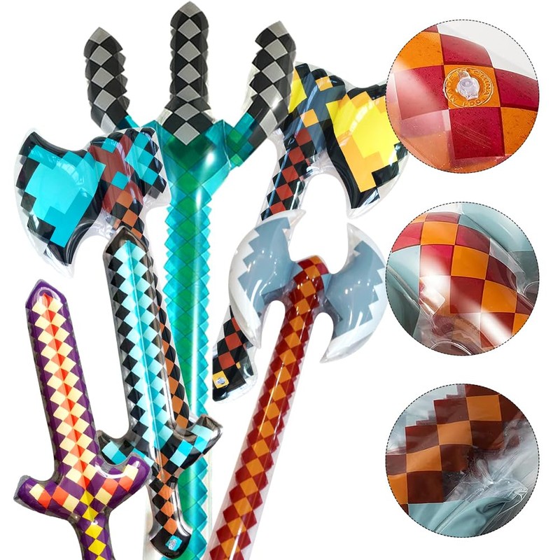 - ❤【Versatile Play Options】This set includes a variety of inflatable weapons, including swords, pickaxes, hatchets, and tridents. Whether your child wants to be a pirate, a knight, or a pixel warrior, they'll have plenty of options to choose from. Let their imagination run wild!