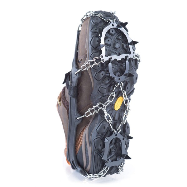 • GRIP ON PACKED SNOW AND ICE - 11 carbon steel 2/3 inch spikes that are dispersed across a broad area