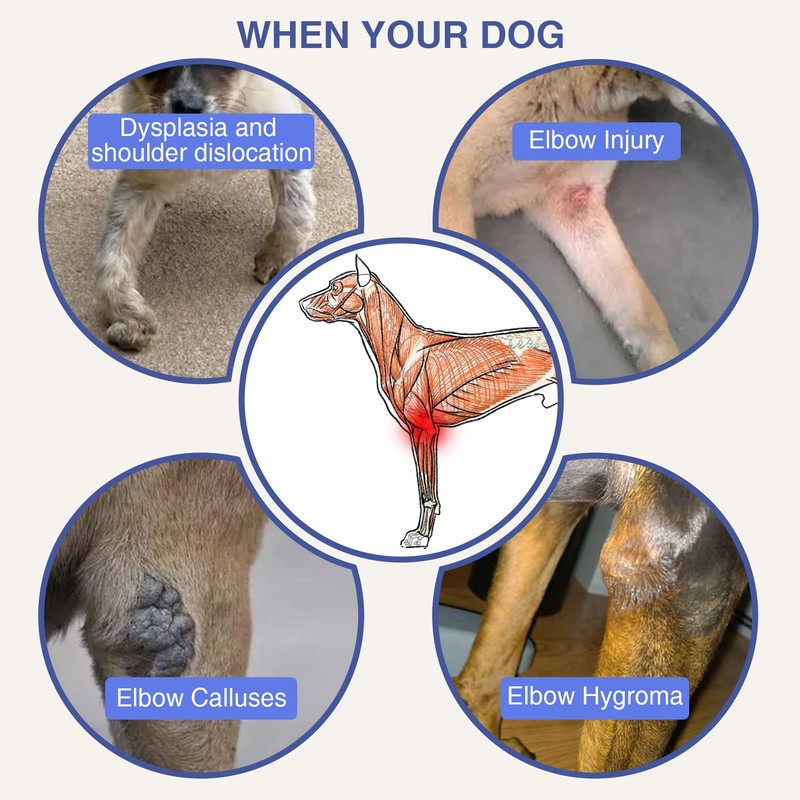 he Elbow Dog Brace – the nice solution for dogs suffering from elbow arthritis, dysplasia, and dislocation. Our front elbow brace for dogs is designed to provide support and maintain flexibility, protecting your dog from elbow calluses, pressure sores, improve elbow arthritis, dysplasia and shoulder dislocation, reduce eczema and preventing them from licking their wounds, aiding in the healing process.