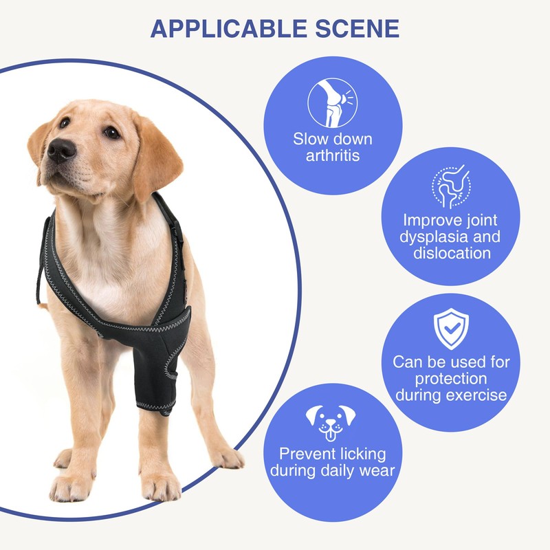 • Versatile Use: Our front leg and shoulder support braces ensure unrestricted movement for your dog. These braces for dogs' front legs enable them to walk, run, sit, and lie down comfortably, providing a secure fit that allows pets to maintain flexibility and stability during exercise. Additionally, while wearing the brace, it serves as a preventive measure, keeping your dog from licking wounds and causing secondary damage.