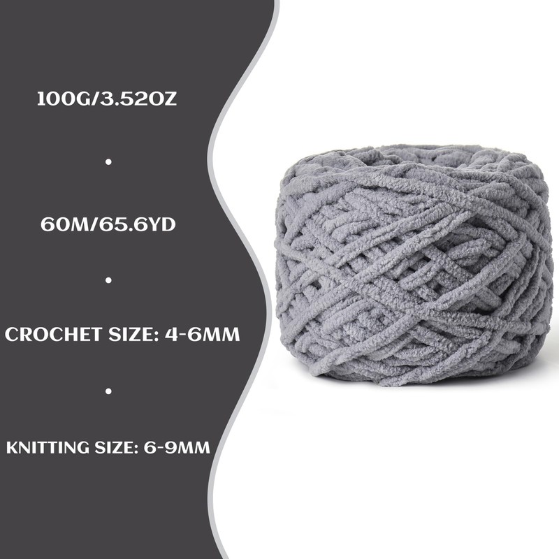 Hilo grueso de chenilla esponjoso para ganchillo de 100 g (65.6 yardas) – Hilo de bebé para ganchillo suave – Hilo de terciopelo para manta de ganchillo – Hilo de ganchillo Amigurumi (Grizzly)