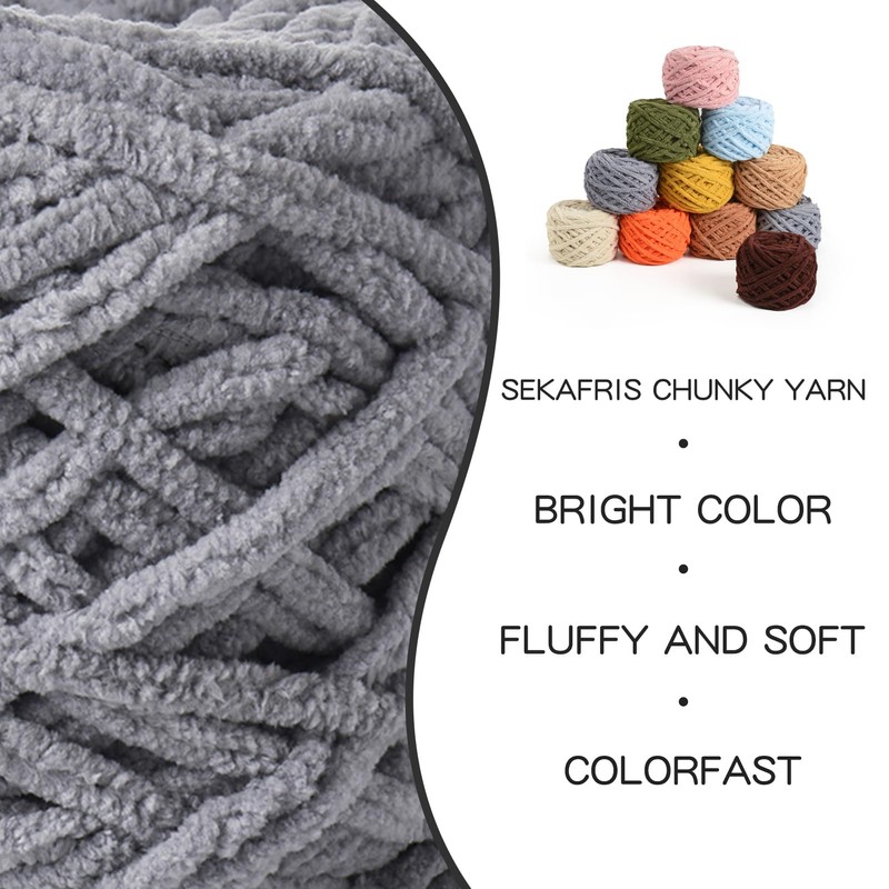 - Alta calidad: hilo de chenilla Sekafris está hecho de 100% poliéster, color brillante y puro, sin pérdida de cabello, sin decoloración, sin pelusas, no es fácil de anudar, no es fácil de romper, y se siente esponjoso y suave