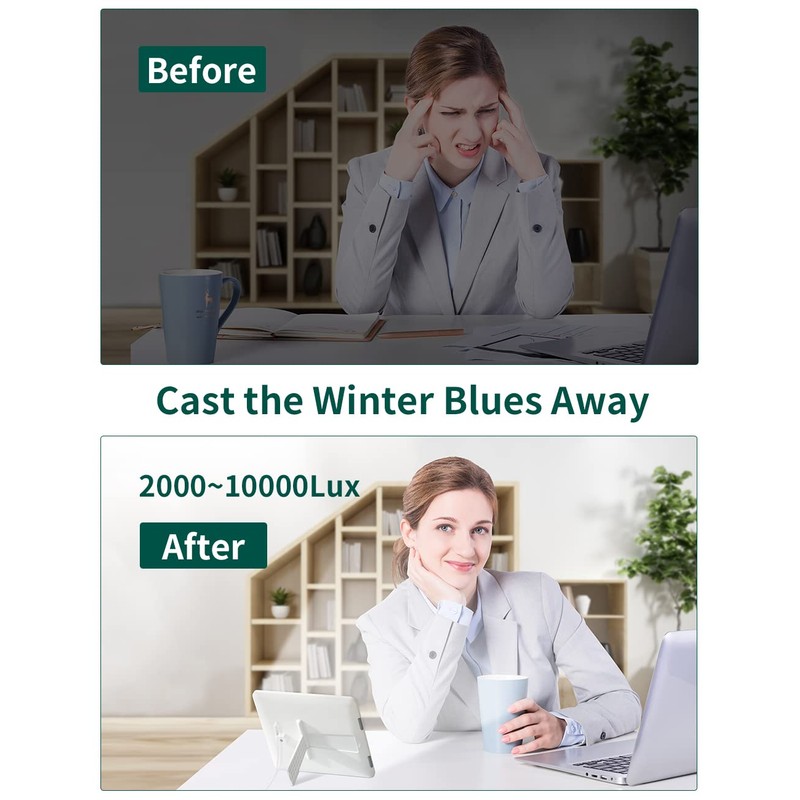 - 10,000 Lux Therapy Light: 10,000 lux intensity provides 6500K light, completely UV-free, glare-free, helps increase energy, improves mood, sleep and enhances concentration, effectively eliminate winter blues