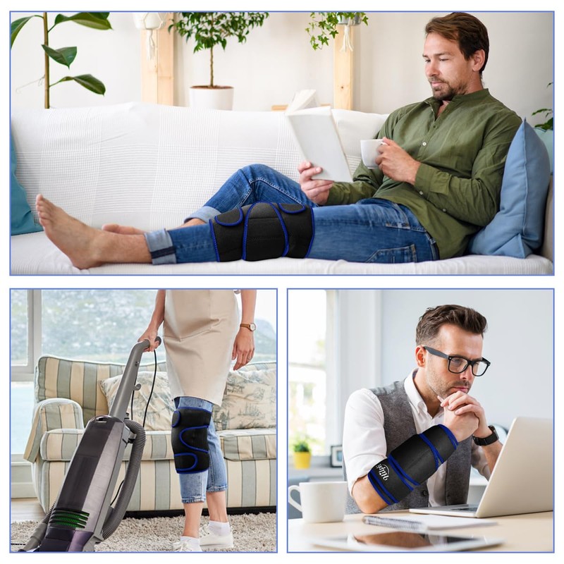 - Hands-free Application & Enjoy Anywhere - Our knee cold pack have three adjustable neoprene straps with magic velcro can make sure it secure around the knee for hands-free application and the full range of movement. Cold compress knee wrap can be used sitting, standing, or lying down, very suitable for home or work, outdoor to use.