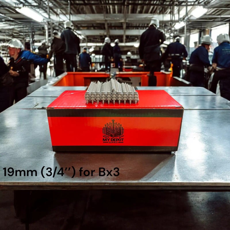 This package includes 1000 concrete nails suitable for use with the Hilti Bx3 fastening system. The nails are made of carbon steel and have a galvanized zinc coating with a thickness of 20 µm. The thread size is 0.12 inches and the item length is 19mm (3/4 inches). The nails have a flat head and are suitable for use with a shoot drive style.