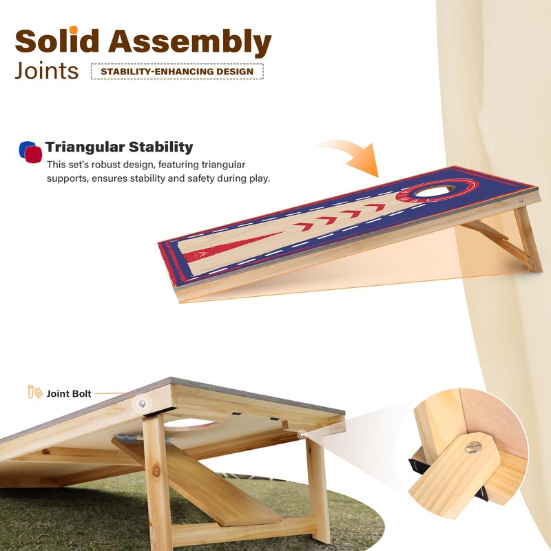 - 【Complete Play Set】The cornhole set is game-day ready with two cornhole boards, eight bean bags. It's perfect for players seeking both authenticity and convenience in their gaming experience