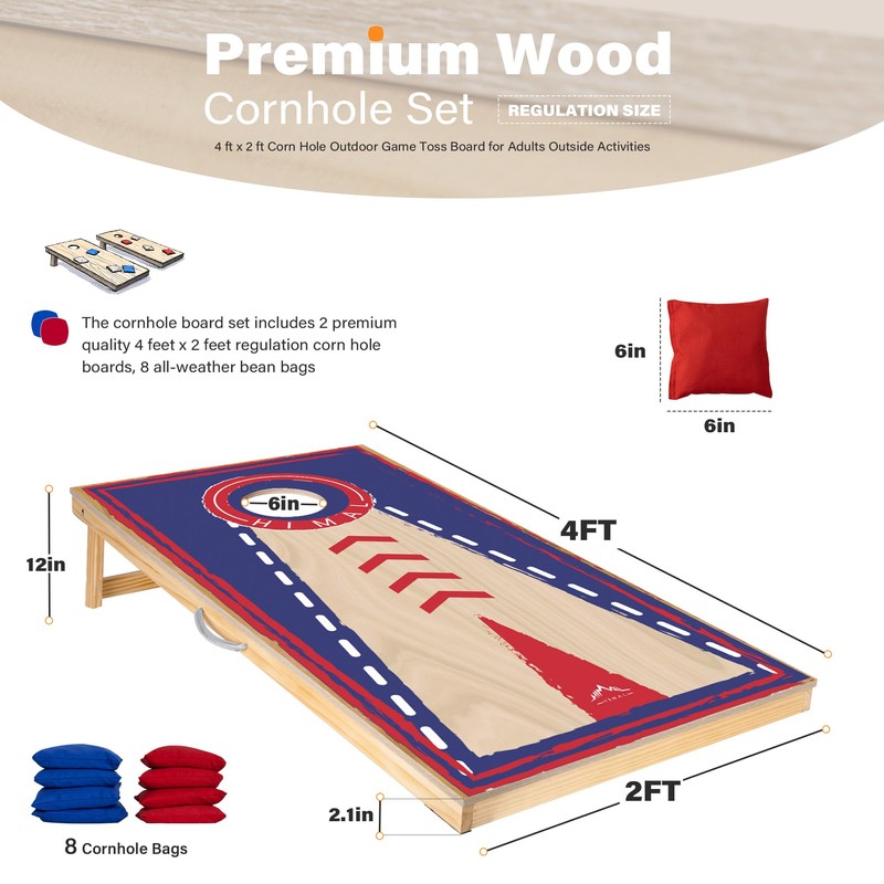 - 【Premium Build Quality】Crafted from premium solid wood, our regulation-size (4x2/3x2 feet) cornhole boards are polished for a sleek finish, ready for your personal touch. Durable and designed for seamless play, the cornhole board set the stage for countless games