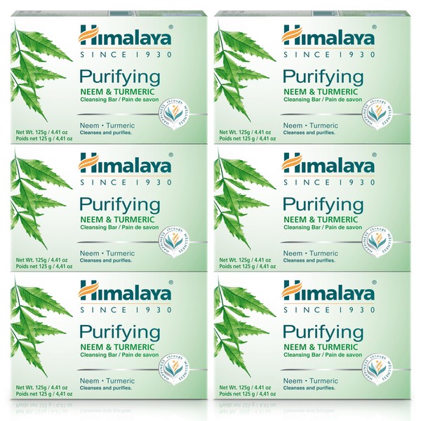 Himalaya Himalaya Purifying Neem & Turmeric Cleansing Bar for Clean and Healthy Looking Skin, Free from Parabens, SLS and Phthalates, Gluten Free, Vegan, 125 g (4.41 oz), 6 Pack