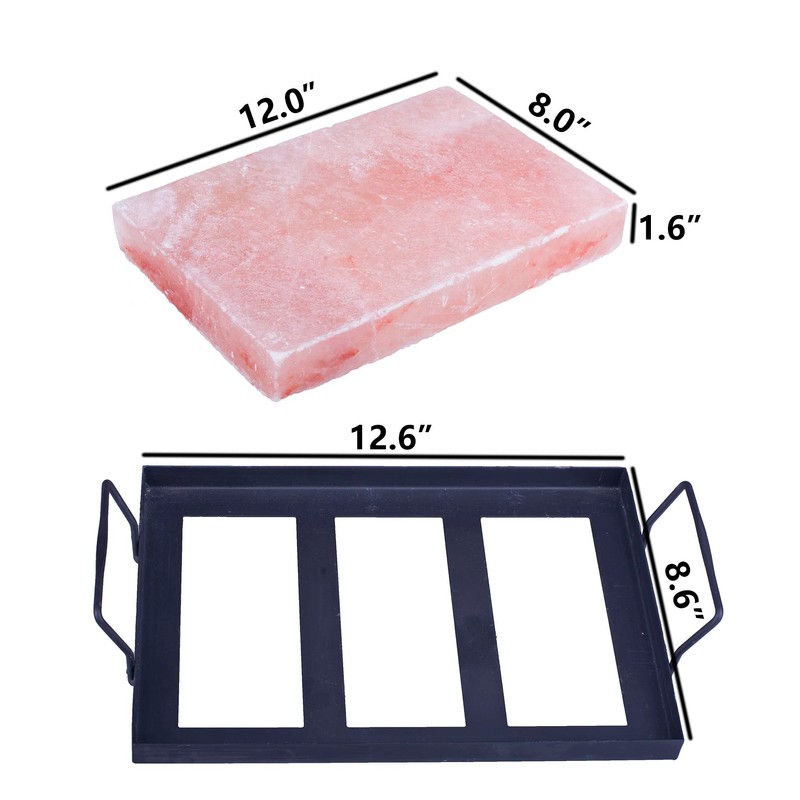 - HIMALAYAN SALT COOKING BLOCK SET - All of our Himalayan salt is mined in the Himalayas. Unlike processed table salt, these blocks are made from 100% pure high quality Himalayan salt. With iron Steel Holder to Avoid Rust. Size 12 X 8 X 1.6.