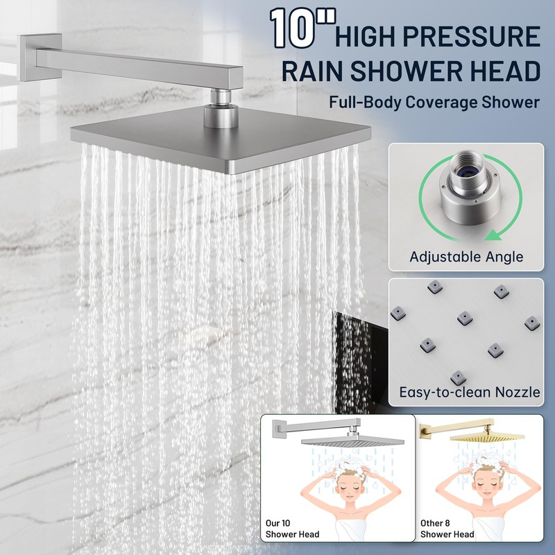 - Stylish Shower Faucet Set:Featuring a Brushed Nickel finish that protects resist daily scratches, corrosion and fading, this tub shower set is stylishly designed to complement any décor and add elegance to your bathroom