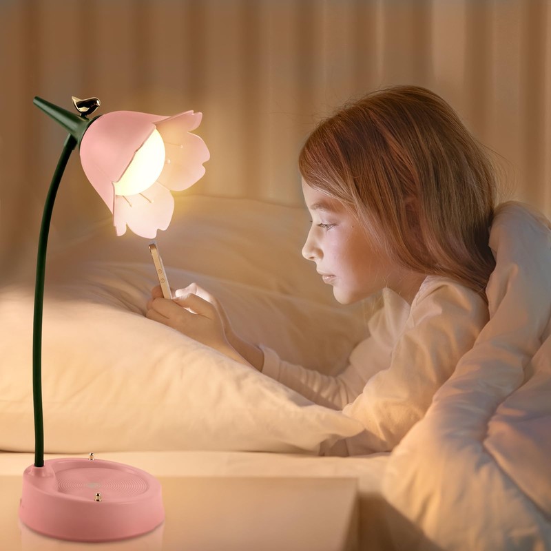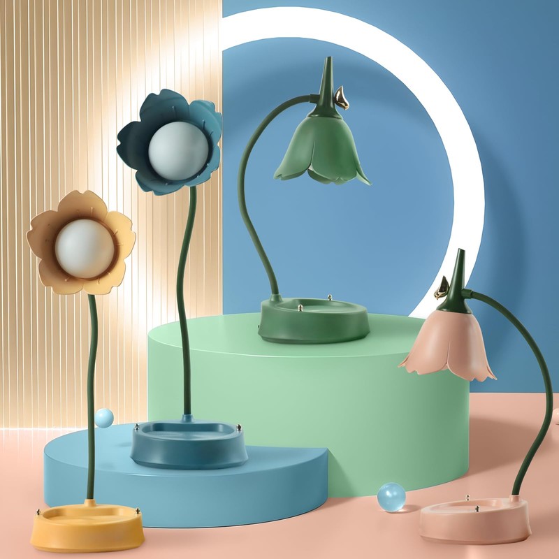 - CUTE DESK LAMP The design of the table lamps in this series is inspired by forests, flowers and birds. The table lamp has 4 colours, which can be used as a small night light, small night light, reading light or decorative light in the bedroom and living room. It is particularly suitable as a gift for children and friends.