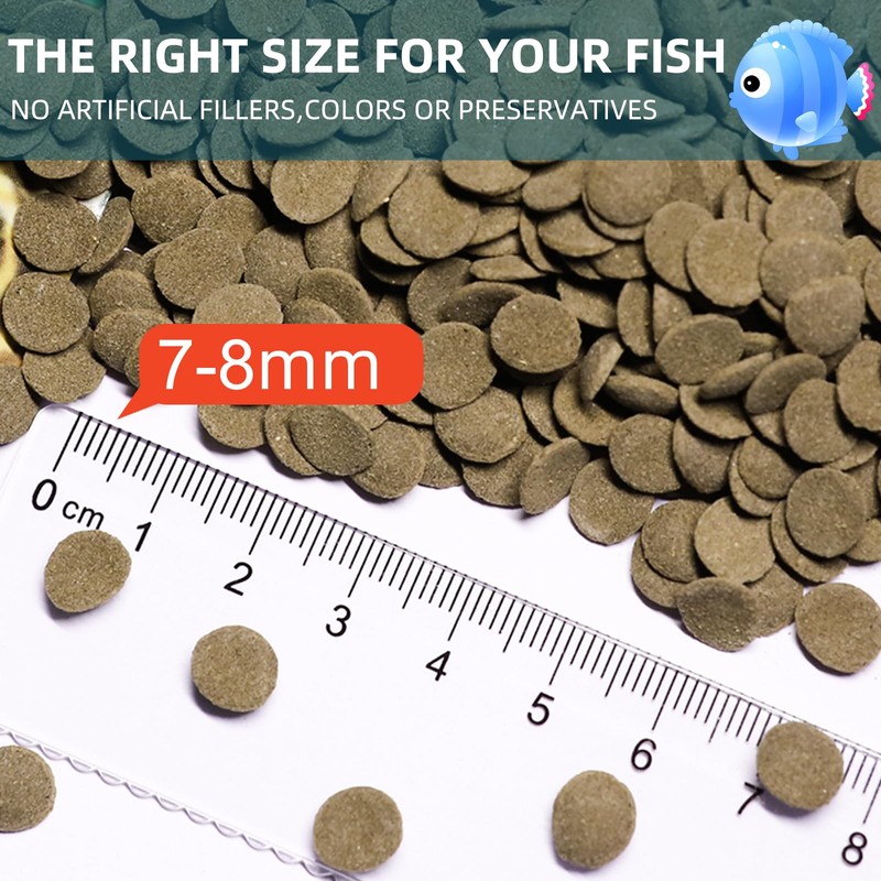 - DISC WAFER PELLET DESIGN, SUITABLE FOR BOTTOM FISH:Specially designed disc wafer pellets can sink quickly to the bottom of the water, making it easy for bottom fish to ingest and reduce waste, while promoting natural feeding behavior of fish and showing bright colors.