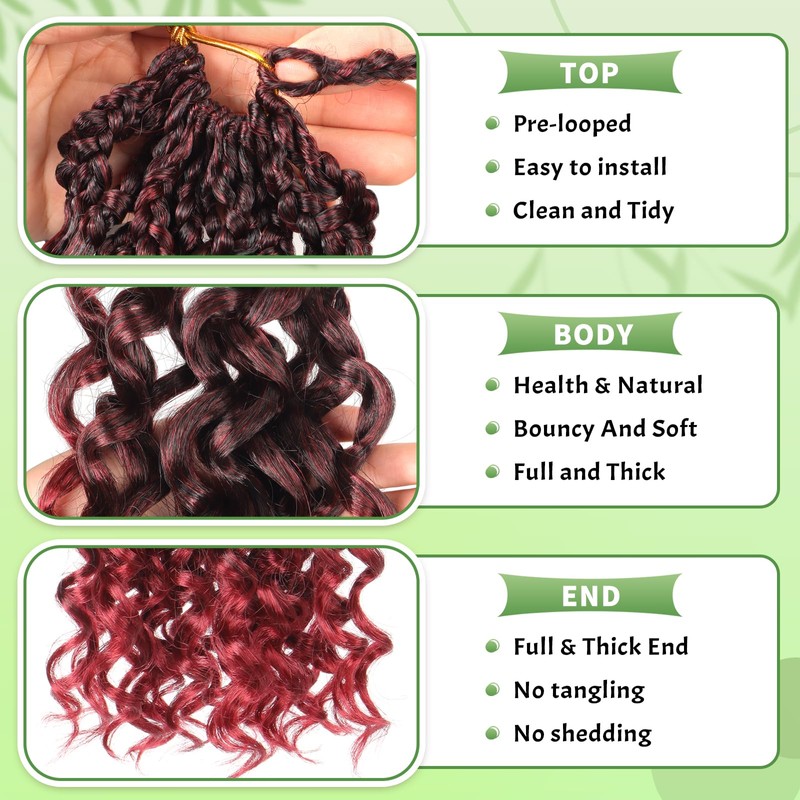 - Nuevo cabello de crochet Gogo Curl pre-enrollado: El cabello de crochet Gogo Curl está hecho de fibra sintética de alta calidad y le da el estilo de las trenzas de caja de diosa. Cuenta con un pre-enrollado y trenzado en la parte superior. Es más fácil de colocar que el cabello de crochet Gogo Curl común, ideal para principiantes y ahorra tiempo y dinero.