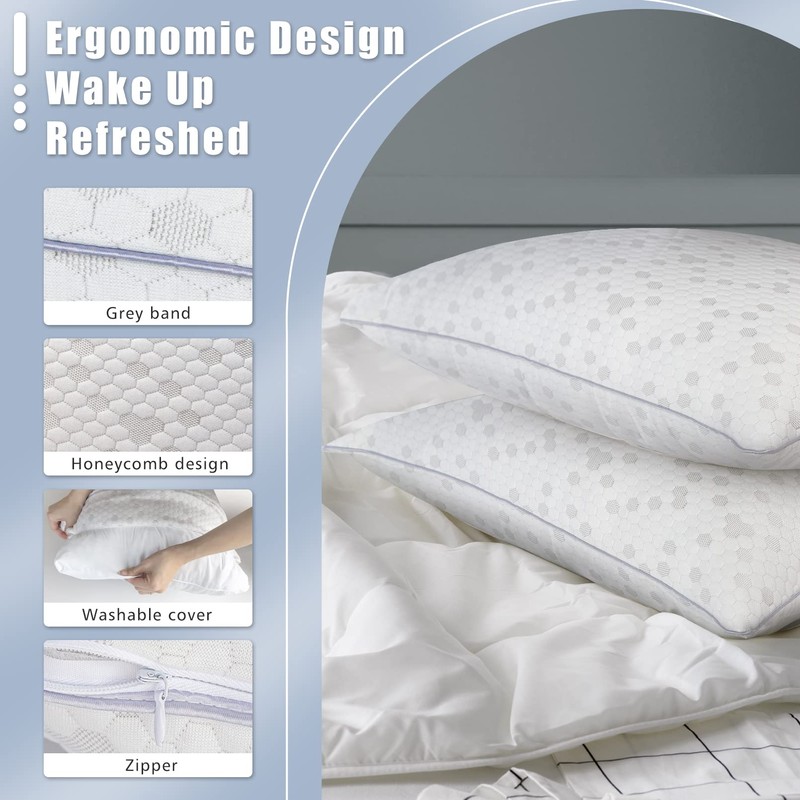 • [ Breathable Cover] - The pillows cover is made of breathable polyester fabric material ,special honeycomb shape makes the pillow more breathable and soft. Skin friendly cover and naturally breathable fabric that will keep you comfortable as you sleep. Provide you the fluffy and cloud-like feeling.