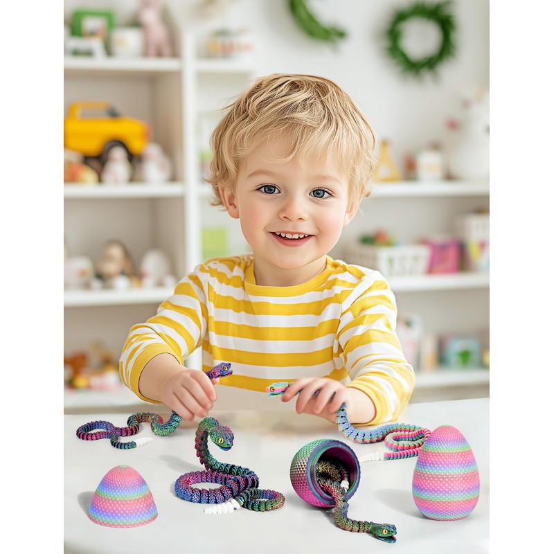 HIMS 3D Printed Snake Egg, Easter 3D Printed Snake with Egg, Movable Snake Fidget Toy, 3D Printed Dragon Egg, Easter Snake Eggs, Flexible Snakes and Egg Toy for Children