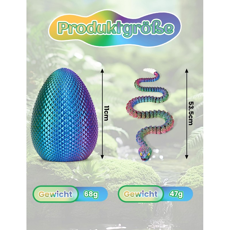 • High-quality material: our 3D printed snake eggs are made of environmentally friendly, degradable PLA, which is durable and safe. With a variety of colours to choose from, they are ideal for collectors. Precisely crafted with authentic details to create a lifelike toy that inspires appreciation for life and nature.