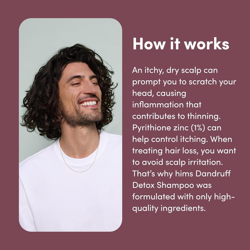 - Dermatologist Formulated: hims Dandruff Detox Shampoo for men was formulated with dermatologists so you can feel confident on your journey