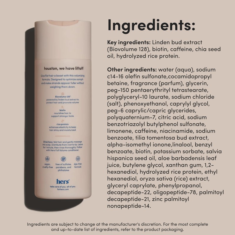 - INCLUDES: 2 x 6.4 fl oz bottles of Hers Full Volume Shampoo
