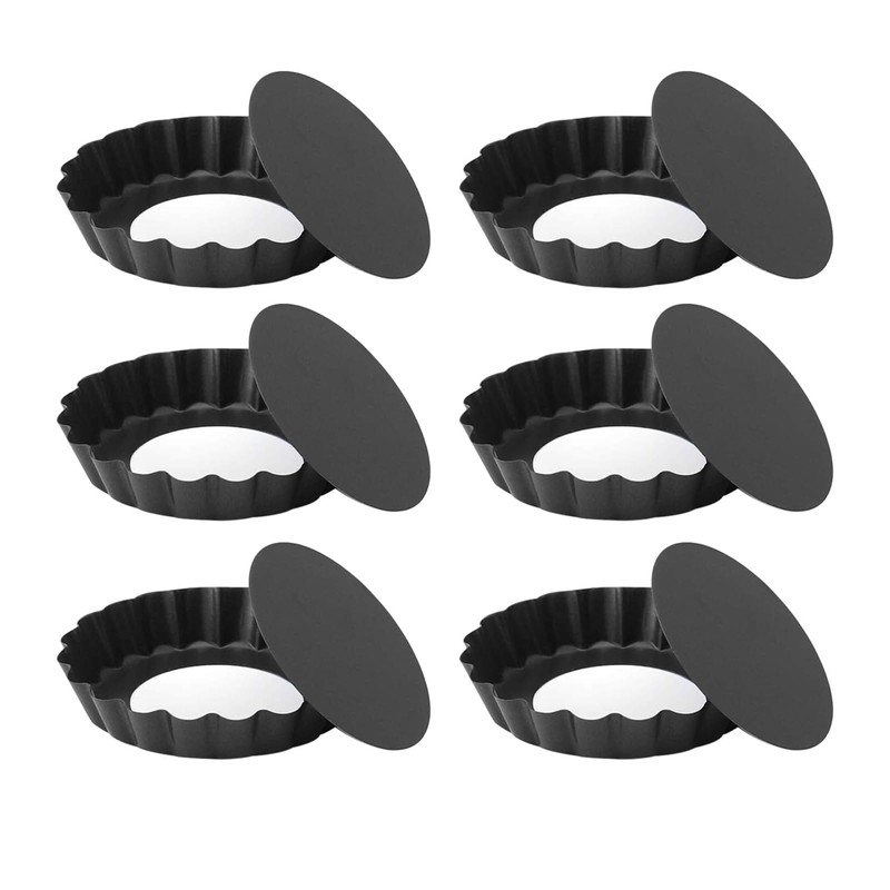 Hinapan Pack of 6 Tart Mould with Lifting Base, 3 Inch Tart Moulds with Removable Base, Carbon Steel Baking Moulds for Mini Tarts, Home Use Baking Mould, for Home, Restaurant