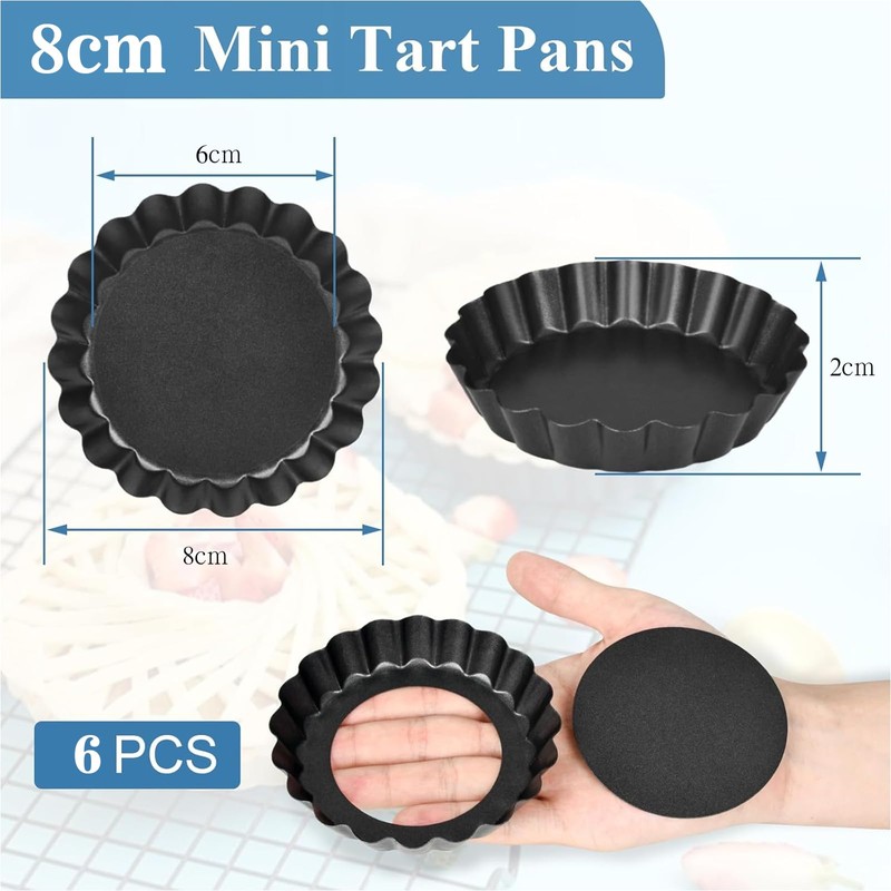 - COMFORTABLE SIZE With a diameter of 8 cm and a height of 2 cm, the baking pan is ideal for small tartlets and desserts, perfect for home use or small gatherings