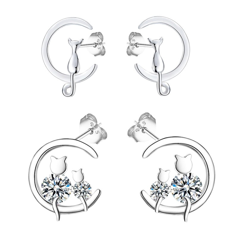 • Color: Silver. Size: 10mm 12mm. Studs earrings for women sterling silver, cat stud earrings for women, cat stud earrings for girls, sterling silver cat stud earrings, moon stud earrings for women, sterling silver stud earrings moon, moon earrings silver.