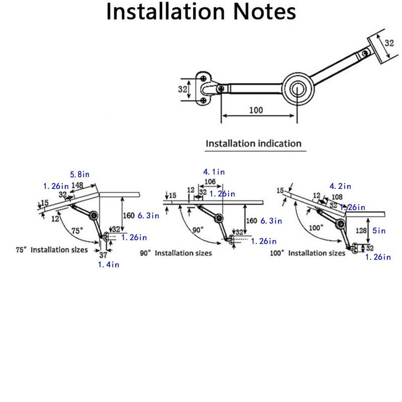 - EASY TO INSTALL Our soft close hinges can be mounted on the left or right side, also used for side and top mounting. Upward open door adjustable angle of 75°, 90°, 110°. Simply mark two drill holes and screw each mounting bracket. We supply assembly instructions for 75°, 90° and 100° opening