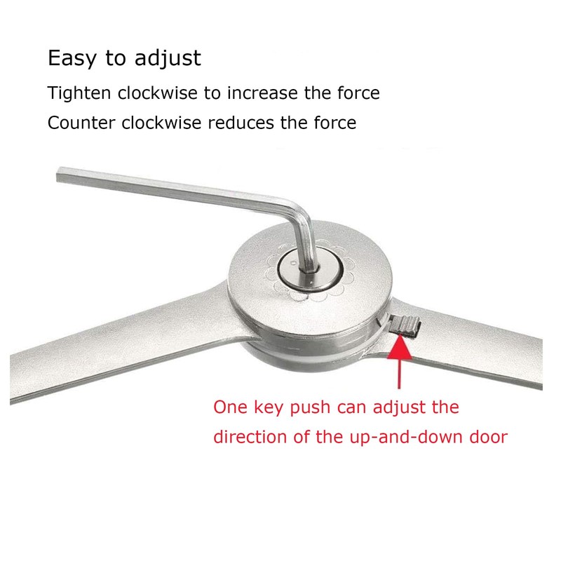 - Adjustable tension: adjust the tension with Allen key to fit lids with different weights. After installing the hinged lid stand hinge, please tighten the mechanism into the Allen keyhole in the middle of the arms to set up appropriate pressure, prevent the lid from slamming.