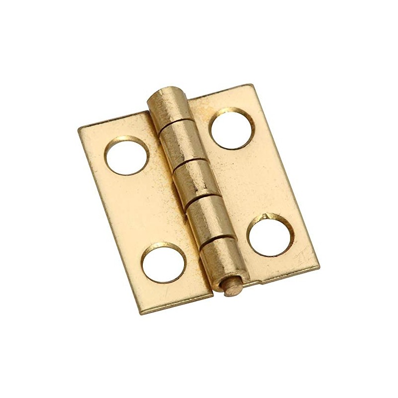 These small narrow style hinges can be used for a variety of applications including small boxes, furniture, cabinets, small chests, jewelry boxes, and a variety of other craft projects. This hinge is made of high quality solid brass with a solid brass finish and is built to last. Size: 3/4" Inch x 5/8" Inch. Material: Solid Brass. Finish: Solid Brass. Designed for small chests, jewelry boxes, craft projects, etc. Decorative design. Surface mount for easy installation. Safe Working Load: 2 lbs. Fasteners included. 4 pack.