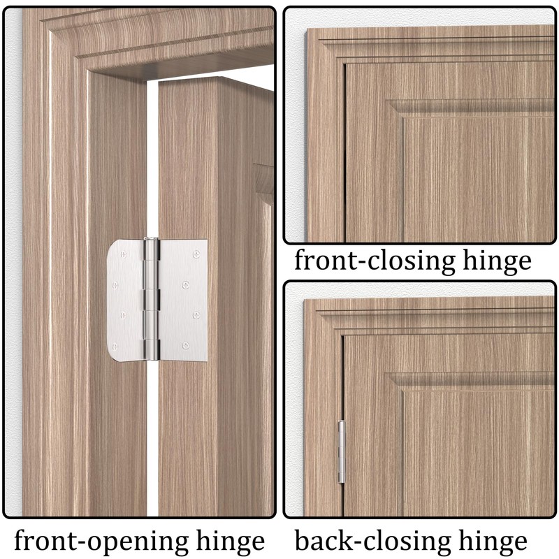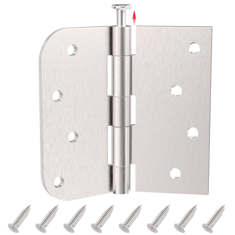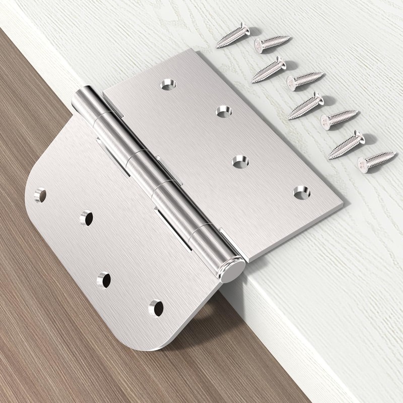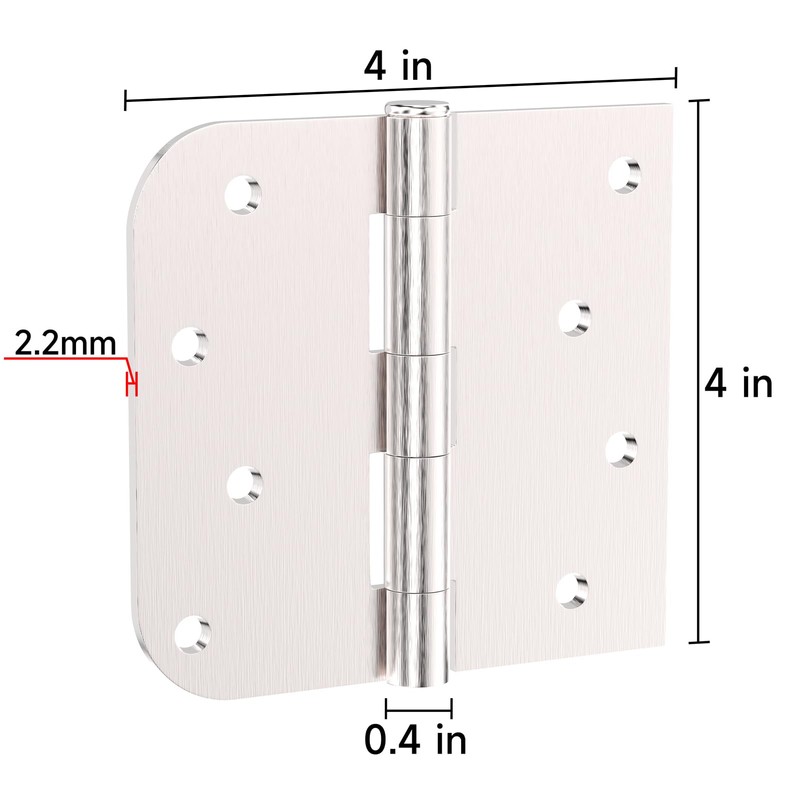 - ✨【COMPLETE SET】A Box of 6pack 4 inch x 4 inch door hinges comes with 48 matching screws that have the same color as the hinge. The round side is 5/8'' Radius Corners another side is square. The door hinges brushed nickel allows for an extra wide 270 degree rotation.