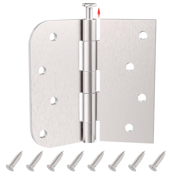 Hinges, Exterior Door Hinges Brushed Nickel 6 Pack 4 Inch 5/8" Radius Removable Pin No Squeaks for Heavy-Duty Front & Back Door