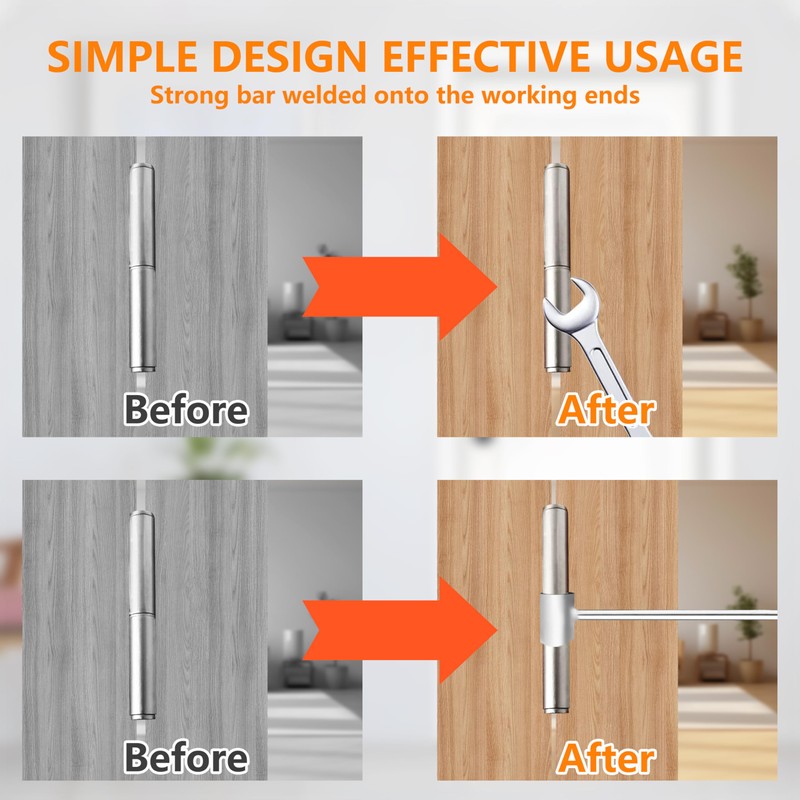 - User-Friendly and Handy: Featuring an ergonomic handle and compact design, this tool simplifies hinge adjustments, even in tight or awkward spaces, making it accessible for any user. Its compact size makes it easy to store in a toolbox or carry to different job sites.