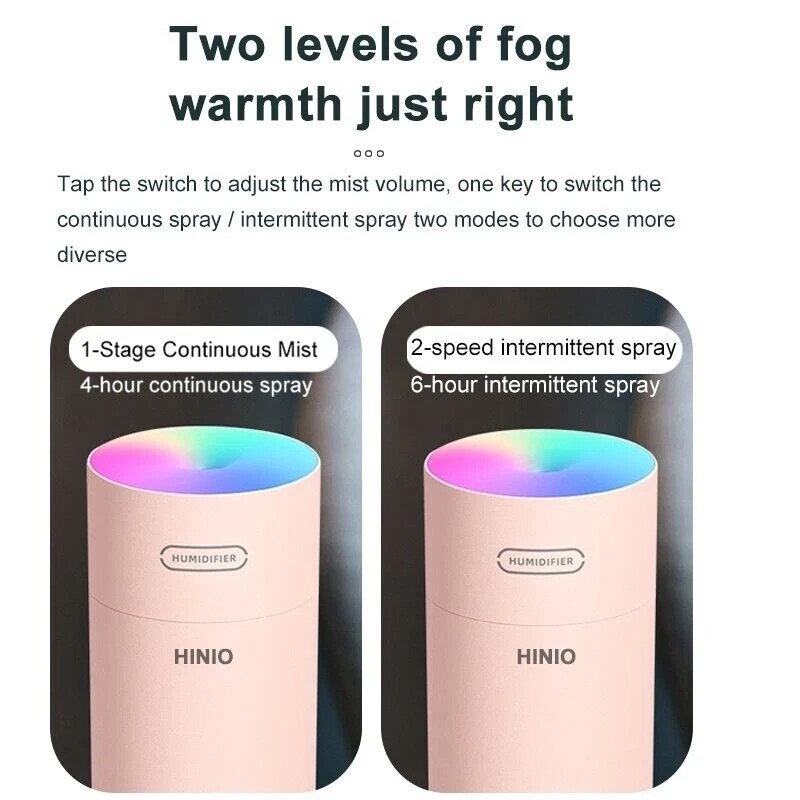 HINIO 270ml Ultrasonic USB Humidifier Air Purifier Essential Oil Aroma Mist Diffuser - Pink