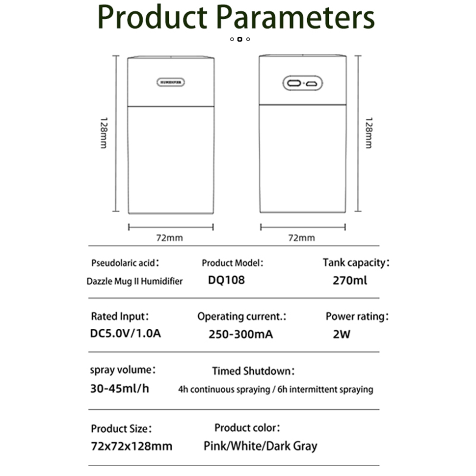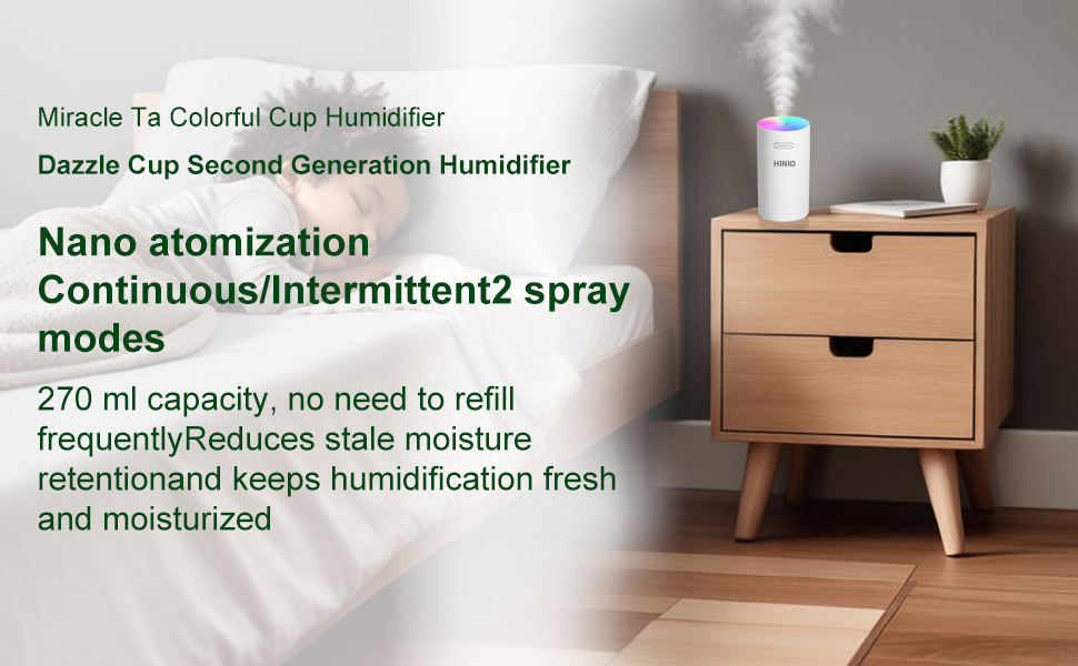 the second generation humidifier is approximately 270 ml; two spray modes: