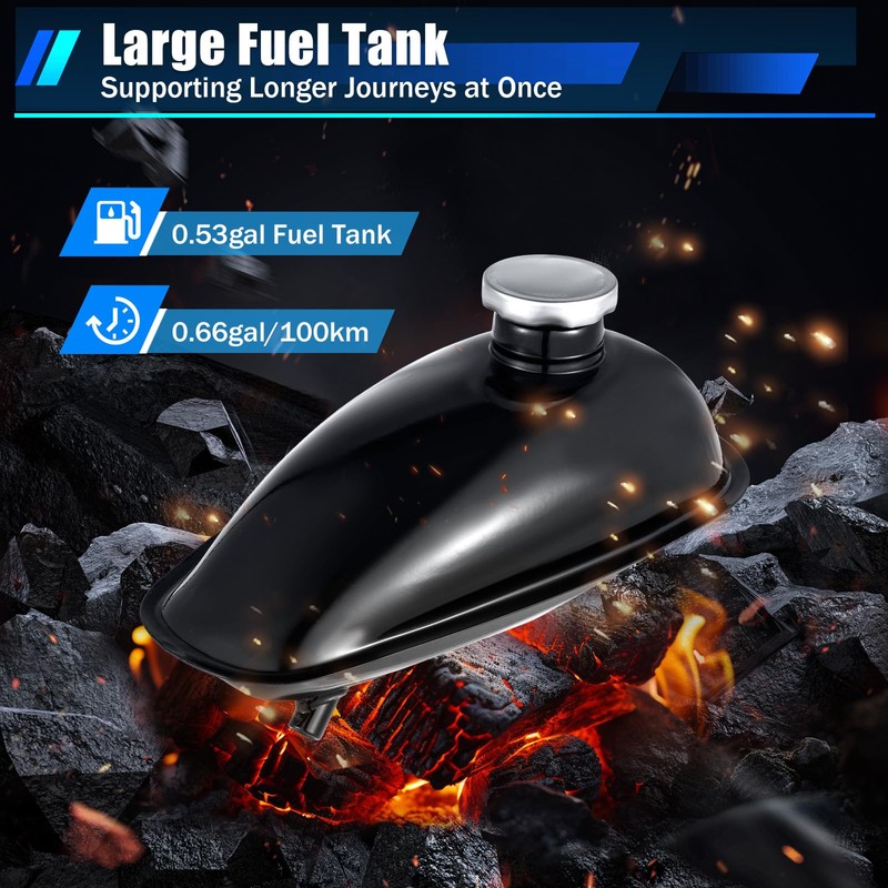 - Large Fuel Tank: A fuel tank with a capacity of up to 0.53gal supports longer journeys at once, and fuel consumption of around 0.66gal/100 km also reduces the hassle of frequent refueling