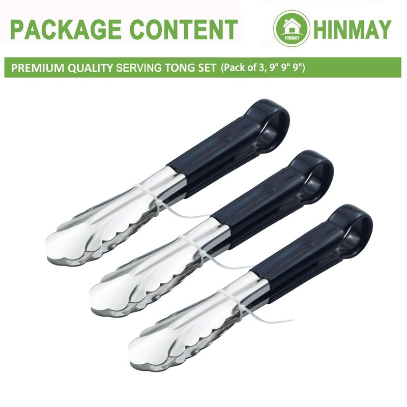 - ✅【FOOD-GRADE STAINLESS STEEL AND SOFT HANDLE】HINMAY kitchen cooking tongs are manufactured from a premium 100% Food Grade stainless steel, safe for food contact. Stable and simple structural design and soft plastic handle with non-slip design for comfortable feel.