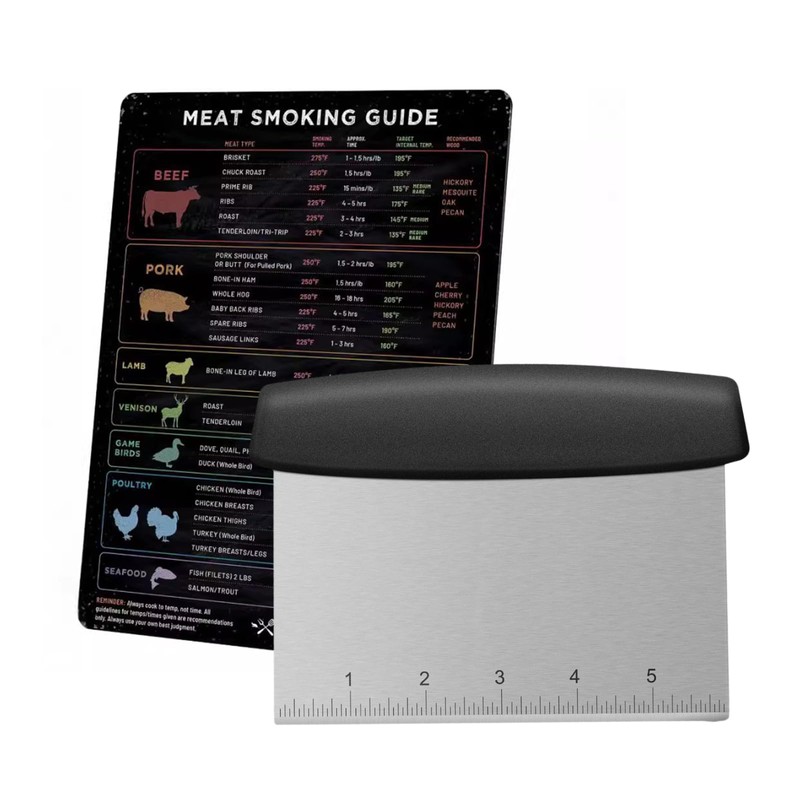 Transform your grilling and griddle cooking experience with this durable stainless steel scraper tool. Perfect for cleaning flat-top griddles and grills, this heavy-duty scraper helps maintain your cooking surface while making cleanup a breeze. The convenient built-in meat temperature guide magnet puts essential cooking temperatures at your fingertips, helping you achieve the perfect doneness for various meats. The sturdy stainless steel construction ensures long-lasting performance and resists corrosion, while the ergonomic design allows for comfortable handling during extended cleaning sessions. Whether you're a professional chef or home cooking enthusiast, this versatile tool is an essential addition to your outdoor cooking arsenal. Keep your griddle pristine and your cooking temperatures precise with this practical combination tool.