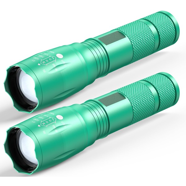 HinsGEAR 1 Mode Flashlights 2 Pack, Super Bright Zoomable LED Tactical Flashlight High Lumens, Water Resistant Portable Pocket Flash Light for Emergency, Camping, Home, and Gift - Turquoise