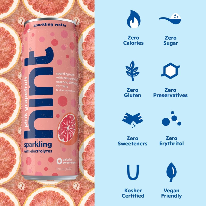 - SPARKLING WATER WITH A TOUCH OF TRUE FRUIT FLAVOR: Our unique fruit essences create surprisingly accurate fruit flavors without adding sugar or diet sweeteners. The result? Delicious Hint Water that tastes like Pink Grapefruit and has zero calories.