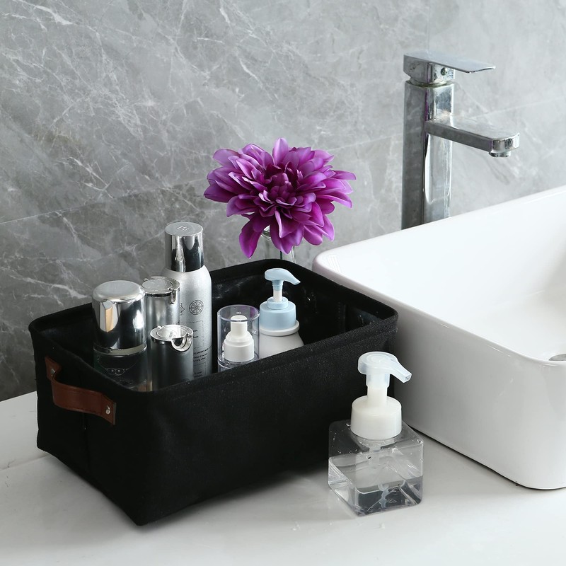 Hinwo 6-Pack Small Canvas Fabric Storage Baskets Set with Handles, Open Storage Bins, Cube Storage Organizer, Shelf Organizer Bins for Closet, 7.9L, 12 x 8 x 5 Inches (Black)