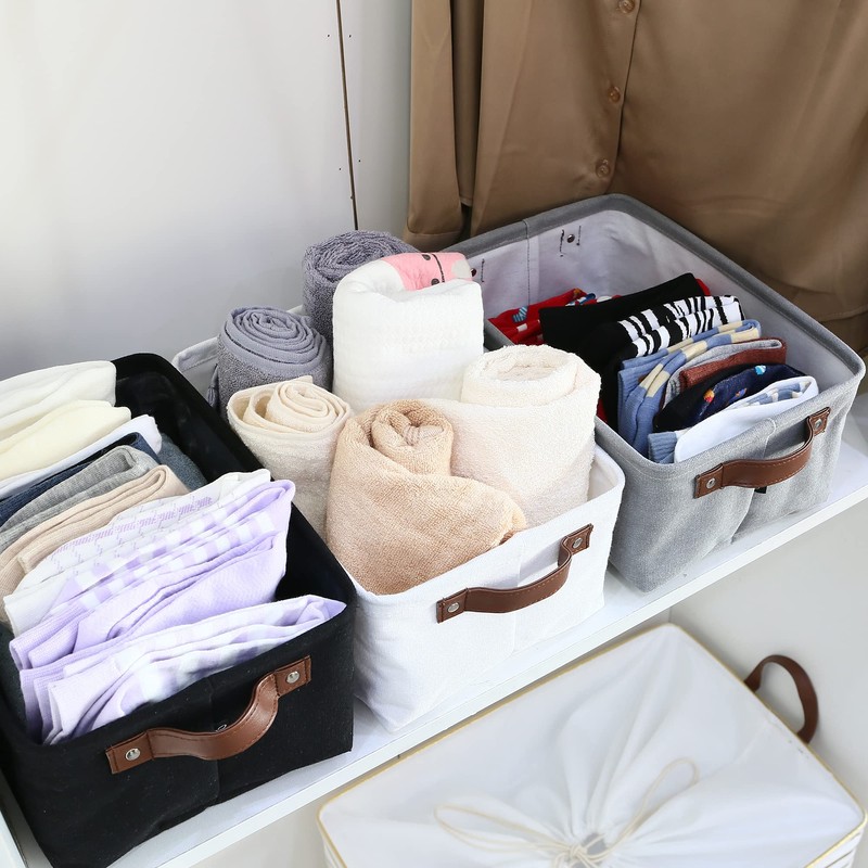 • Small Storage Bins – The rectangle small storage bin measures 12 x 8 x 5” to fit most of closets and shelfs, and provides 8L storage space for storing a variety of items such as underwear, socks, stockings, sunglasses, keys and other daily odds and ends
