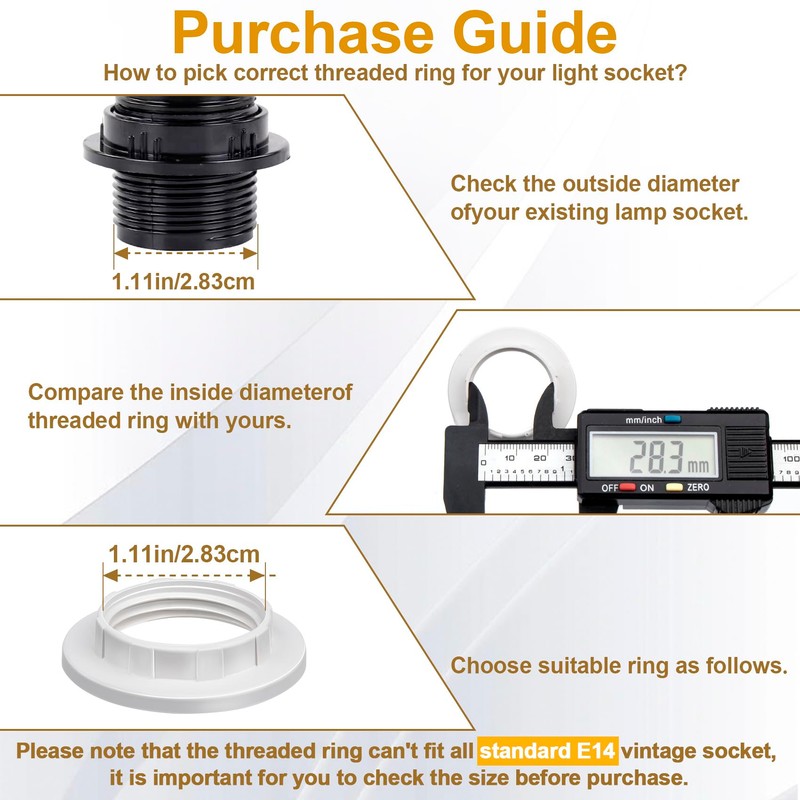 - 【Detail Size】The threaded diameter: 28mm/1-3/32 inch, no-threaded diameter: 43 mm/1-11/16 inch, only suitable for the threaded vintage socket with 1-3/32 " diameter.